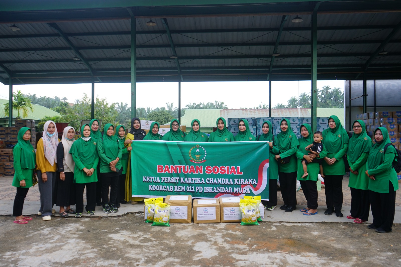 Aceh Tamiang – Danrem 011/Lilawangsa Kolonel Inf. Ali Imran di damping Ketua Persit KCK Koorcab Rem 011 PD Iskandar Muda Ny, Ali Imran memberikan bantuan sembako kepada prajurit korban banjir bertempat di Makodim 0117/Aceh Tamiang Jln. Lintas Sumatera Medan B. Aceh, Desa Sungai Liput, Kecamatan Kejuruan Muda, Kabupaten Aceh Tamiang. Senin (08/12/2025) sore.
