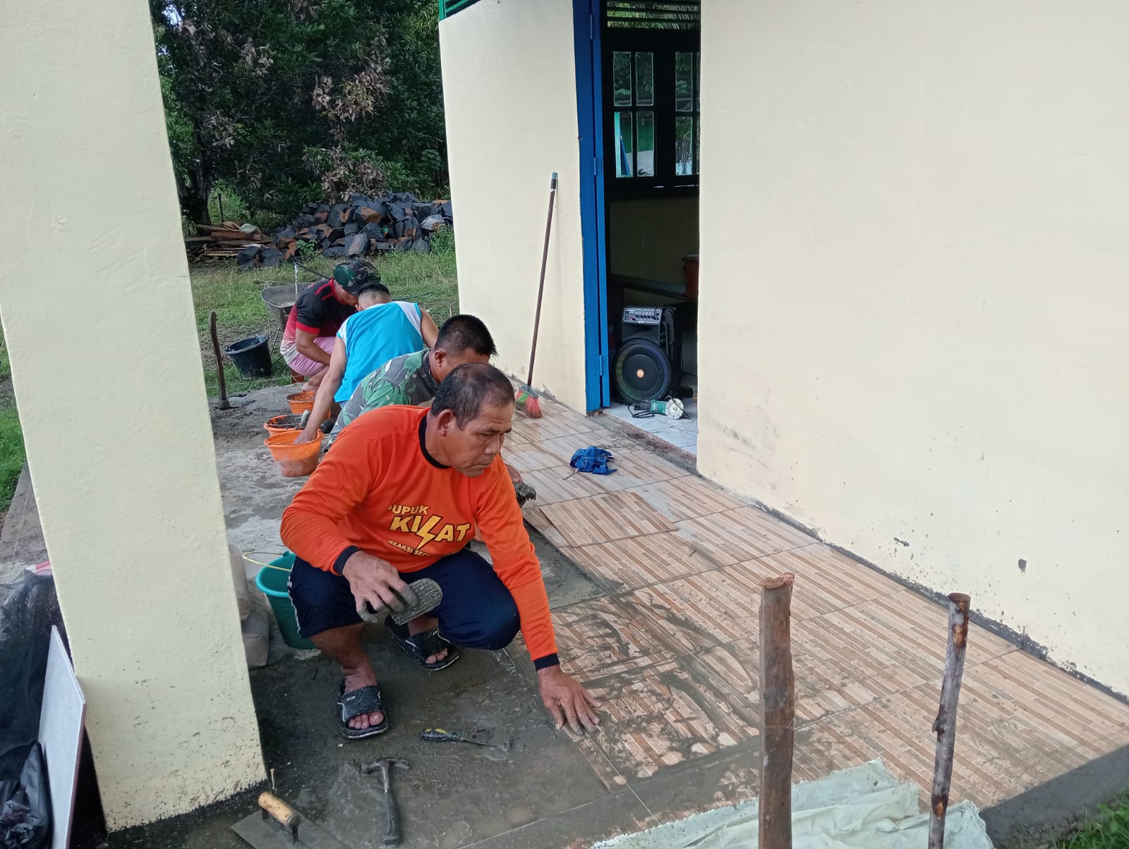 Dengan ketelitian dan keterampilan,anggota Satgas TMMD dan warga memasang keramik dengan baik tanpa kendala,dengan keramik baru tersebut, bangunan tampak memperlihatkan hasil memuaskan.