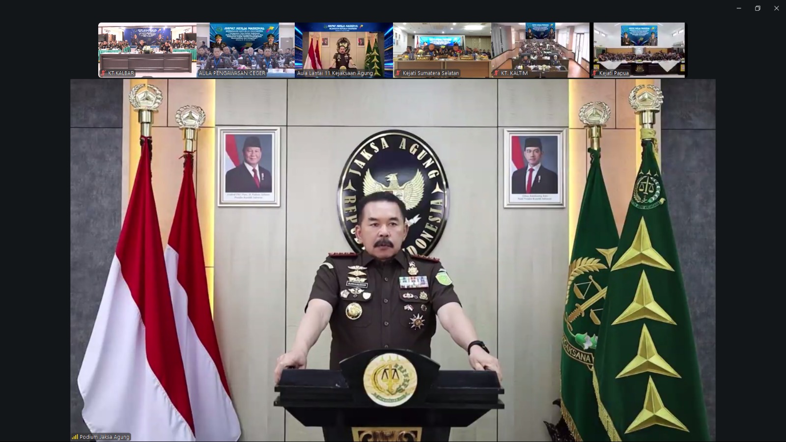 Kepala Kejaksaan Tinggi Kalimantan Barat Dr. Emilwan Ridwan yang di dampingi Wakajati Erich Folanda, SH.MHum beserta Para Asisten, KTU, dan Koordinator, serta jajaran eselon IV dan V mengikuti pembukaan Rapat Kerja Nasional (Rakernas) Kejaksaan Republik Indonesia Tahun 2026 yang diselenggarakan oleh Kejaksaan Agung Republik Indonesia secara virtual, Selasa (13/01/2026) bertempat di Aula Baharuddin Lopa Kejati Kalbar. Kegiatan tersebut berlangsung secara khidmat dan diikuti oleh seluruh pimpinan dan jajaran Kejaksaan dari berbagai daerah di Indonesia.