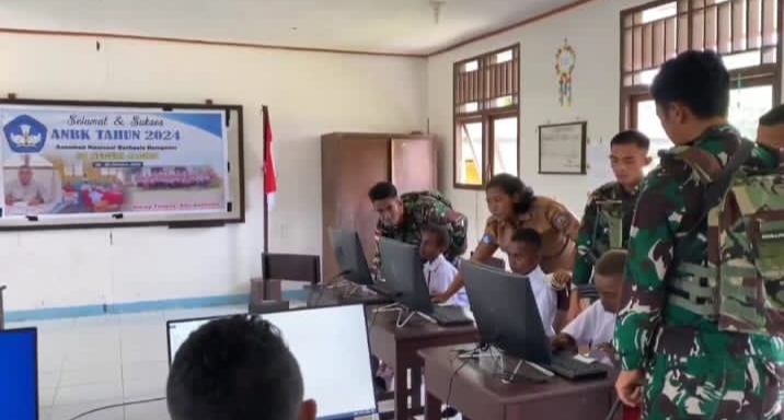 Teluk Bintuni – Pembinaan teritorial terus dilakukan oleh Satgas Pamtas Kewilayahan RI-PNG Yonif 642/Kps, melalui Pos Jagiro. Perbantuan menghadirkan Starlink untuk pelaksanaan ANBK 2024 Siswa siswi SDN Jagiro, Distrik. Moskona Selatan Kabupaten Teluk Bintuni Provinsi Papua Barat, Senin kemarin (28/10/2024).