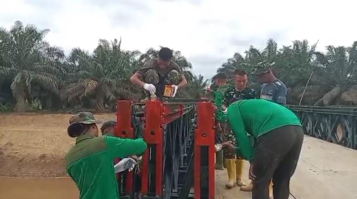 Aceh Tamiang – Tentara Nasional Indonesia (TNI) Angkat Darat memastikan proses pembangunan jembatan Modular dilakukan secara cepat dan intensif.