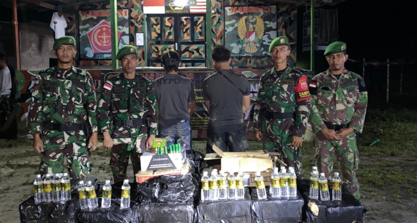 Dalam patroli tersebut, anggota Satgas mencurigai sebuah kendaraan yang melintas. Setelah dihentikan dan dilakukan pengecekan, ditemukan 720 botol miras merek Langkao Kitai yang disembunyikan di dalam kendaraan, serta 250 butir munisi rakitan yang diduga digunakan untuk berburu hewan.