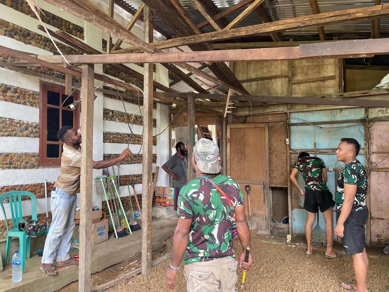 Satgas Yonif 144/JY Gelar Karya Bakti Bersama Warga, Bangun Dapur Untuk Kebutuhan Umat
