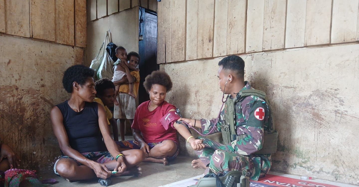 Komandonews.com,Boven Digoel-Sebagai wujud nyata kepedulian memenuhi pelayanan kesehatan masyarakat di perbatasan, Tenaga Kesehatan Pos Km 53 Satgas Pamtas Yonif 144/JY melakukan patroli pelayanan kesehatan kepada masyarakat Kampung Kanggup, Km 60 Distrik Sesnuk. kabupaten Boven Digoel, Provinsi Papua Selatan, Minggu (2/3/2025).