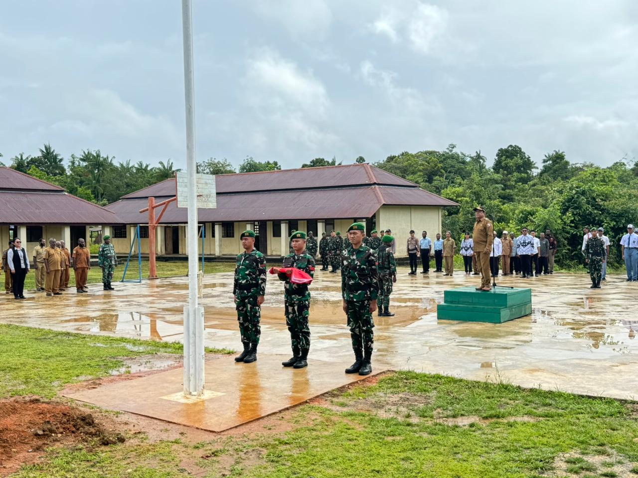 Bertindak sebagai Pembina Upacara adalah Kepala Distrik Midiptana Bapak Martin Lupang S.E dan hadir dalam kegiatan ini Dankipur B Satgas Yonif 144/JY Kapten Inf Rizky beserta anggota, Personel Koramil Mindiptana, Polsek Mindiptana, Guru Sekolah, Kepala Kampung, Tokoh masyarakat dan siswa-siswi SMK N 2 Agribisnis Teknologi.