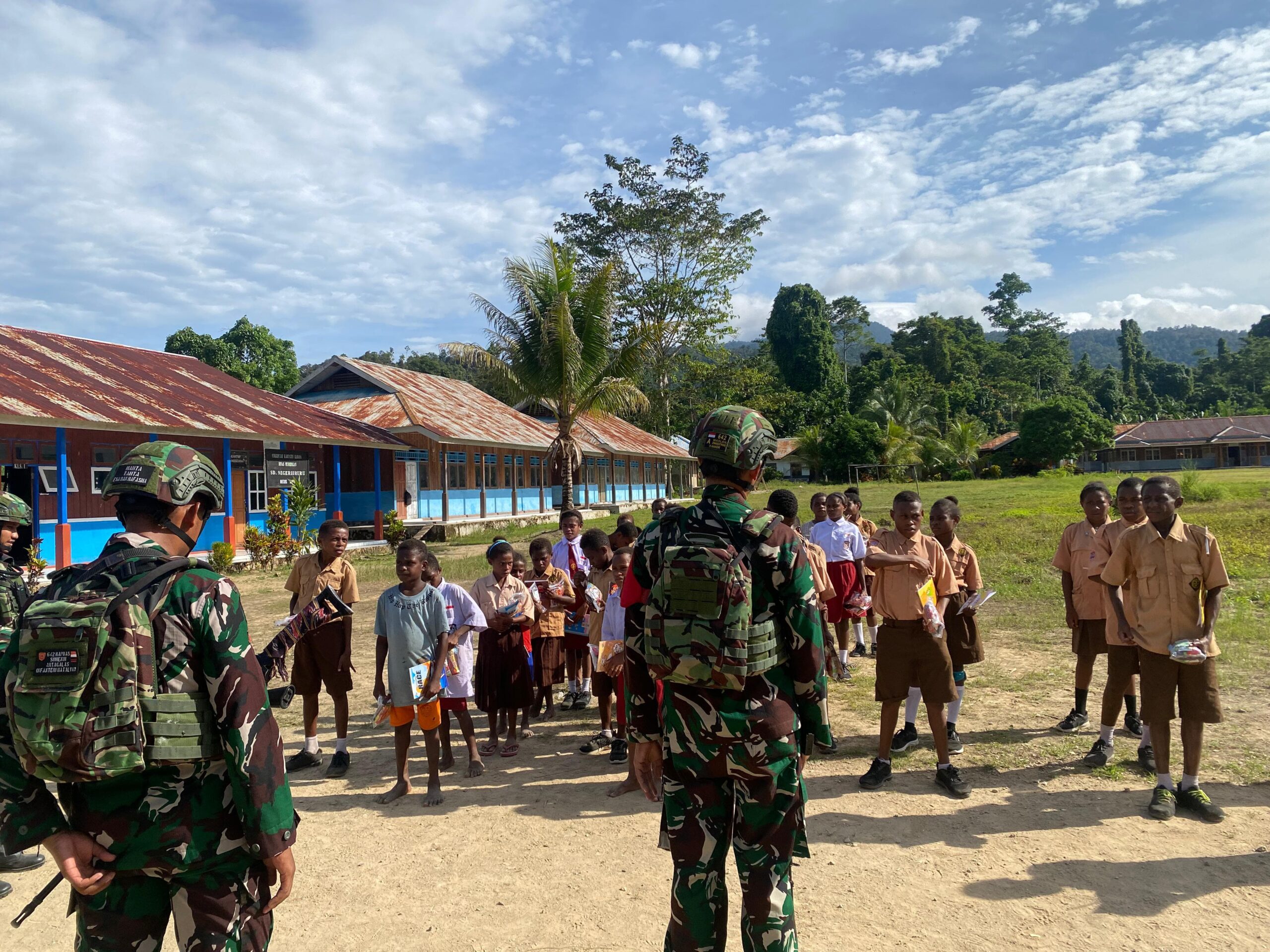 Kaimana – Dalam meningkatkan dan mendukung kualitas belajar anak-anak di tempat bertugas, Pos Yamor Satgas Pamtas Kewilayahan Yonif 642/Kapuas melaksanakan kegiatan pemberian sargal berupa alat tulis, buku serta pemberian snack untuk siswa siswi SD 01 Ururu di Distrik Yamor, Kabupaten Kaimana, Papua Barat. (4/11/2024).