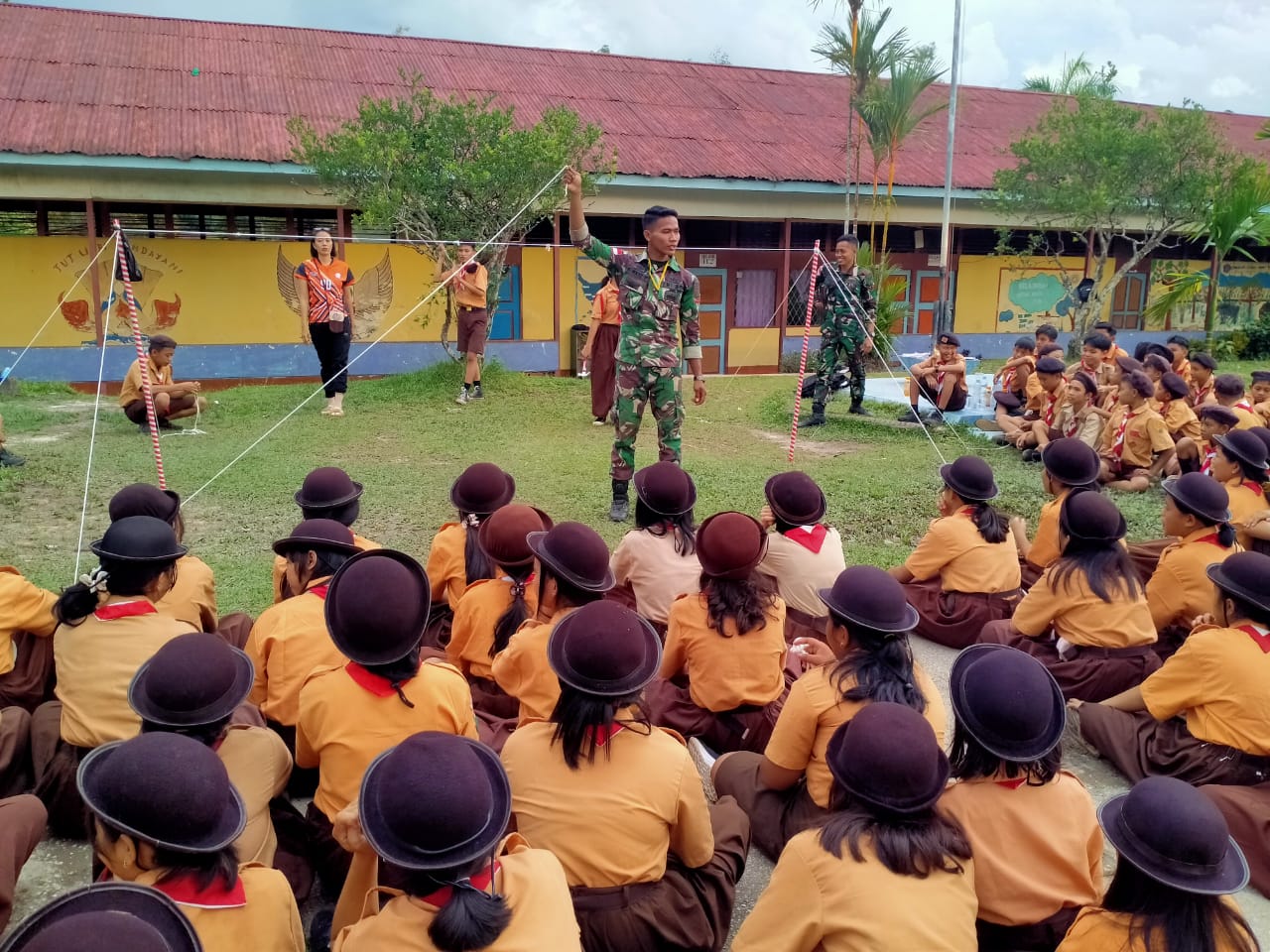 Sintang – Tanamkan jiwa nasionalisme dan pribadi yang disiplin, Pos Komando Utama (Kout) Satgas Pamtas RI-Malaysia berikan wawasan kebangsaan, menjadi tenaga pendidik (Gadik) pramuka kepada siswa-siswi SMP Negeri 1 Ketungau Hulu, Kabupaten Sintang, Sabtu (19/10/2024).