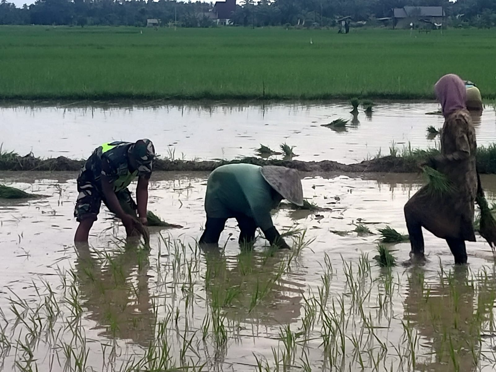 Semangat Babinsa Koramil 05/Tamiang Hulu Bantu Petani Tanam Padi