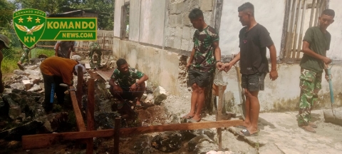 PULAU MOA, komandonews~ Pembangunan Rumah Tidak Layak Huni (RTLH) dalam program TNI Manunggal Membangun Desa (TMMD) ke-128 terus berjalan lancar. Pada hari Minggu, 26 April 2026, personel Satgas Kodim 1511/Pulau Moa fokus melaksanakan pekerjaan tahap awal di rumah milik Bapak Marthen Kaidalu yang berlokasi di Desa Moain.