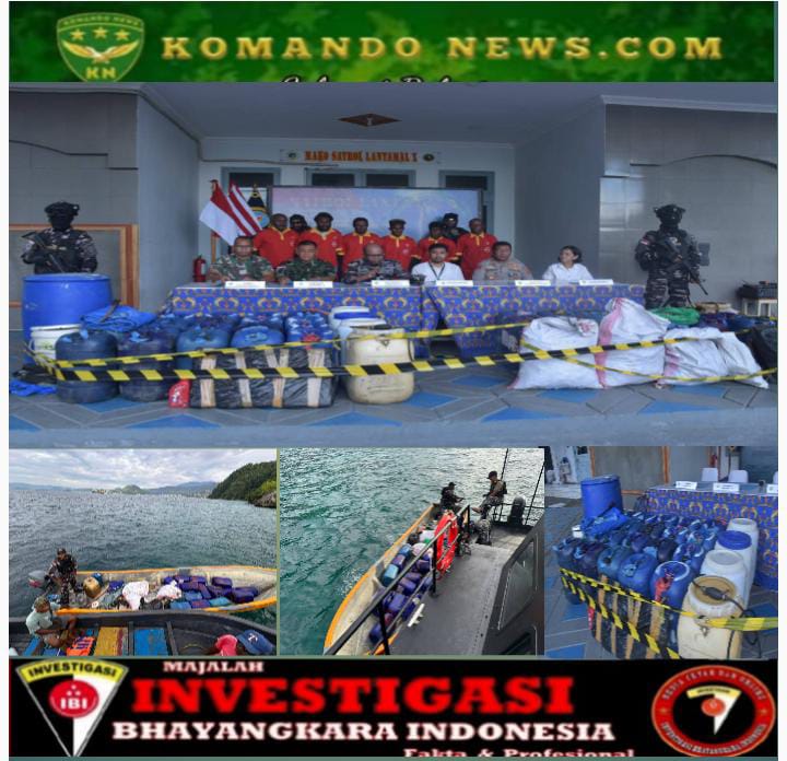 KomandoNews.com|| Provinsi Papua – TNI AL dalam hal ini Lantamal X Jayapura berhasil menggagalkan penyelundupan BBM jenis pertalite, hasil laut berupa sirip hiu, gelembung ikan dan teripang. Hal tersebut diungkapkan Komandan Lantamal X Jayapura Brigjen TNI (Mar) Freddy Jhon H. Pardosi yang diwakili oleh Komandan Satuan Kapal Patroli (Dansatrol) Lantamal X, Kolonel Laut (P) Dedy Obet saat memimpin Press Conference hasil Operasi Penegakan Hukum Laut di Kantor Satrol Lantamal X, Kota Jayapura, Provinsi Papua. Rabu (11/6).
